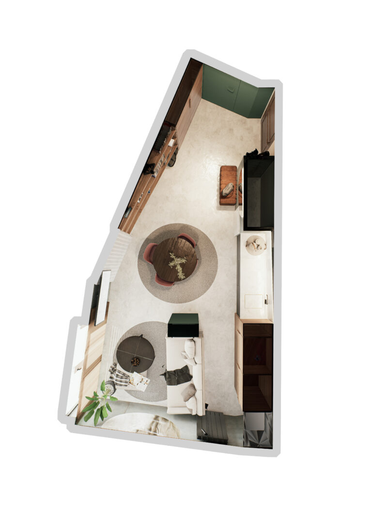 – salon z aneksem kuchennym i wyjściem na balkon typu loggia,